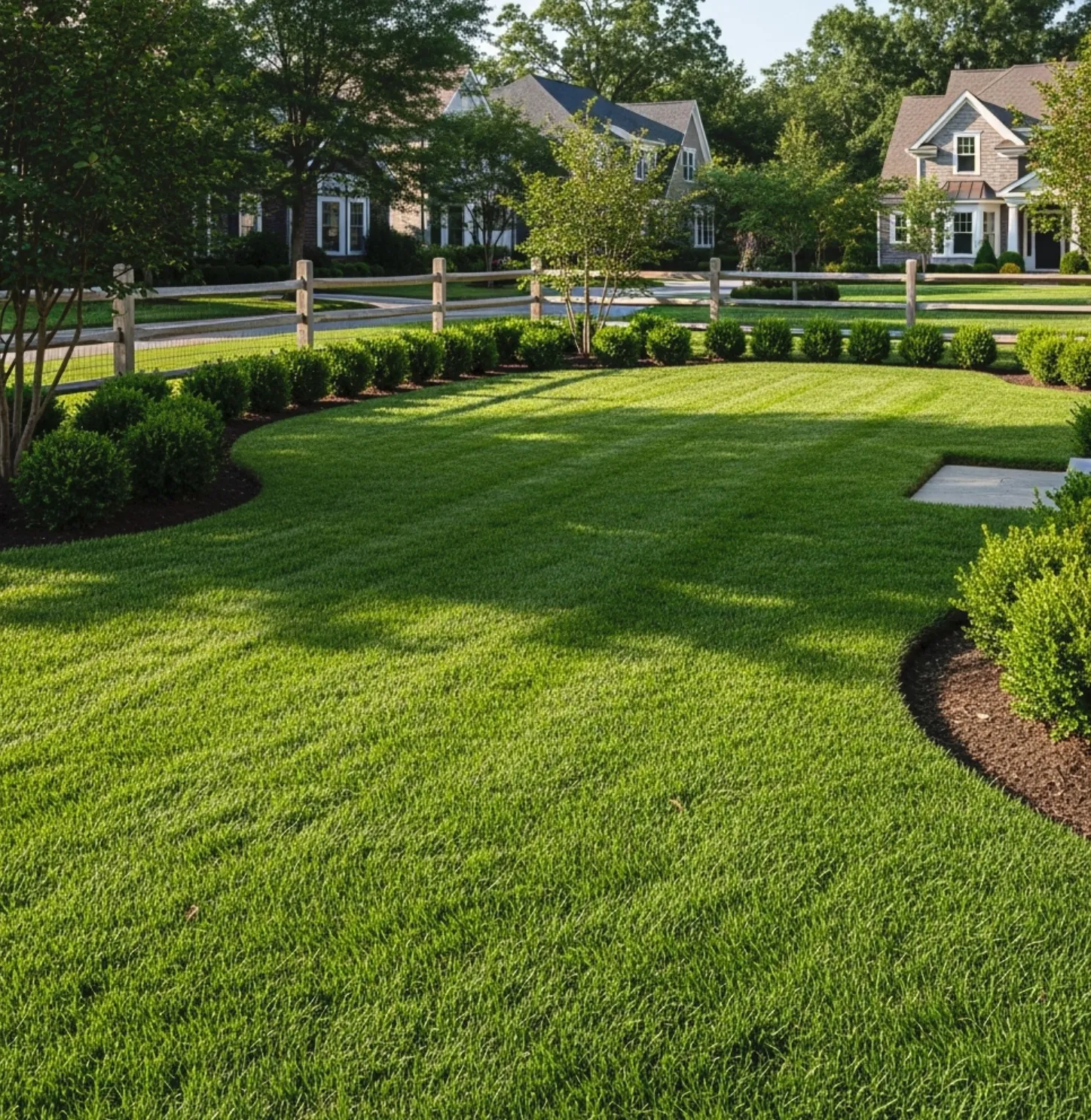 We also monitor pH levels. If your soil is too acidic or alkaline, "locking up" nutrients, we can adjust our plan. We treat the whole yard, but we are careful around your landscape beds (which we can protect with our mulching services).