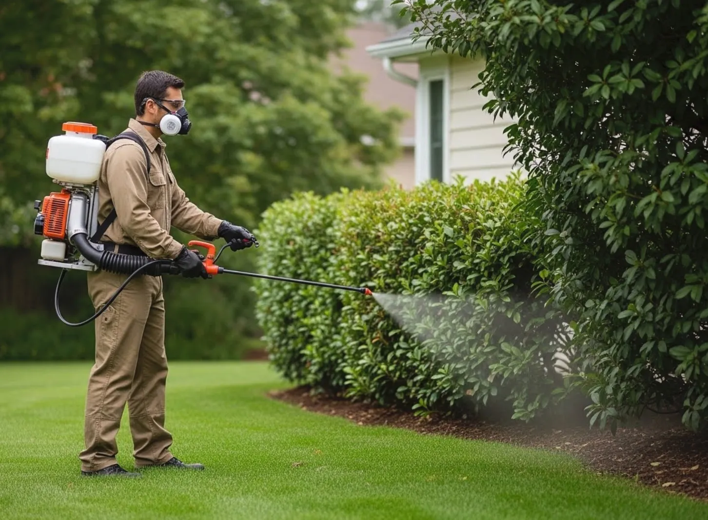 We treat the lawn, landscape beds, and perimeter with a residual insecticide. This knocks down existing populations immediately and creates a barrier that kills new pests entering your yard.